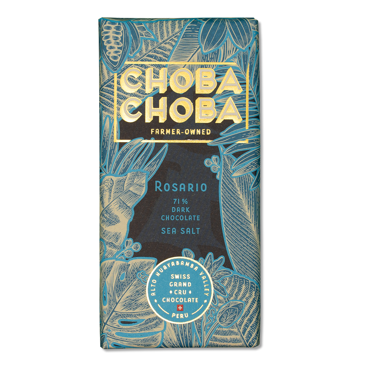Bio Edelbitterschokolade mit Meersalz | Dunkle Schokolade mit 71 % Kakaoanteil und Meersalz. Die Kakaobohnen stammen von Choba Chobas eigenen Farmen im Alto Huayabamba-Tal in Peru. Die intensiven Kakao-Aromen treffen in dieser Schokolade auf die floralen Noten des Meersalzes.