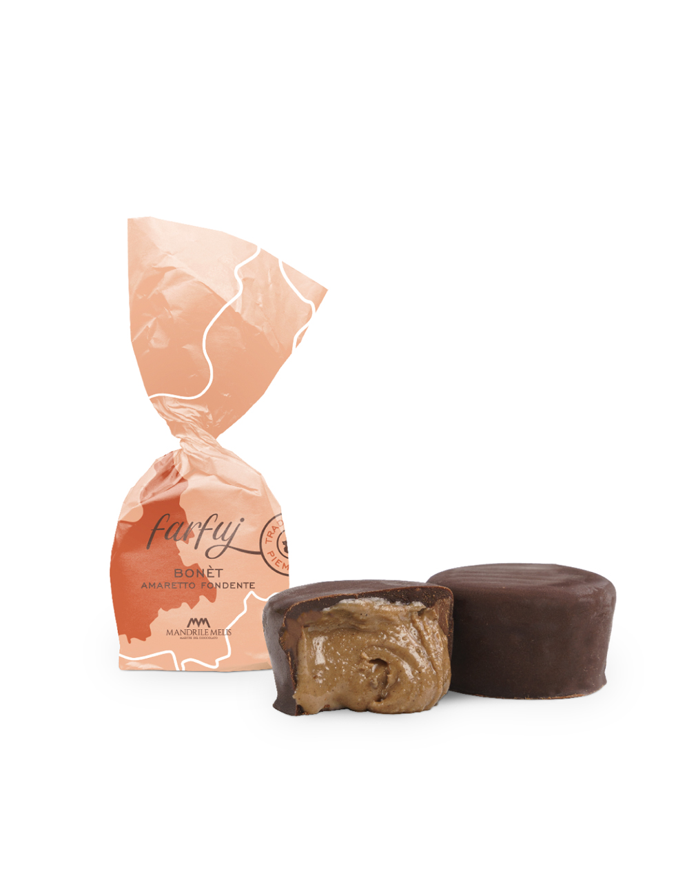 EB-Amaretto | Im piemontesischen Dialekt wird es „Bunet“ ausgesprochen und ist ein Löffeldessert mit alter Tradition, das mit den gleichen Zutaten zubereitet wird, wie die Füllung dieser köstlichen Praline mit dunkler Schokolade.