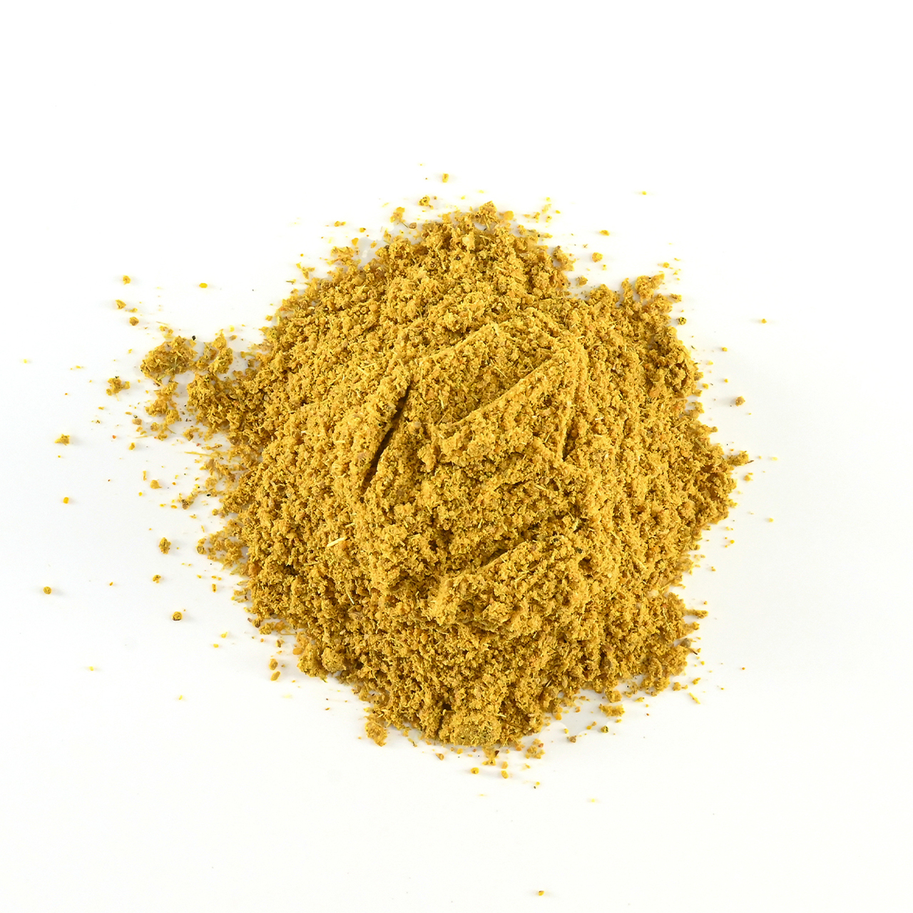 Diese ausgewogene scharfe Curry-Mischung besteht aus feinsten Zutaten. Die Gewürze werden in einem besonderen Verfahren zusammengeführt, geröstet und schonend gemahlen. Um eine homogene Mischung zu erreichen, werden die Gewürze gemeinsam durch die Mühle gelassen und anschließend nochmals behutsam gemischt. Das fruchtig-frische Aroma eignet sich für Geflügel-, Fisch- und Gemüsegerichte gleichermaßen. Zutaten engl. Curry: Koriander, Curcuma, Senfsaat, Bockshornkleesaat, Paprika, Ingwer, Meersalz, Knoblauch, Kümmel, Fenchel, Salbei, Basilikum, Thymian, Oregano, Rosmarin, Chili