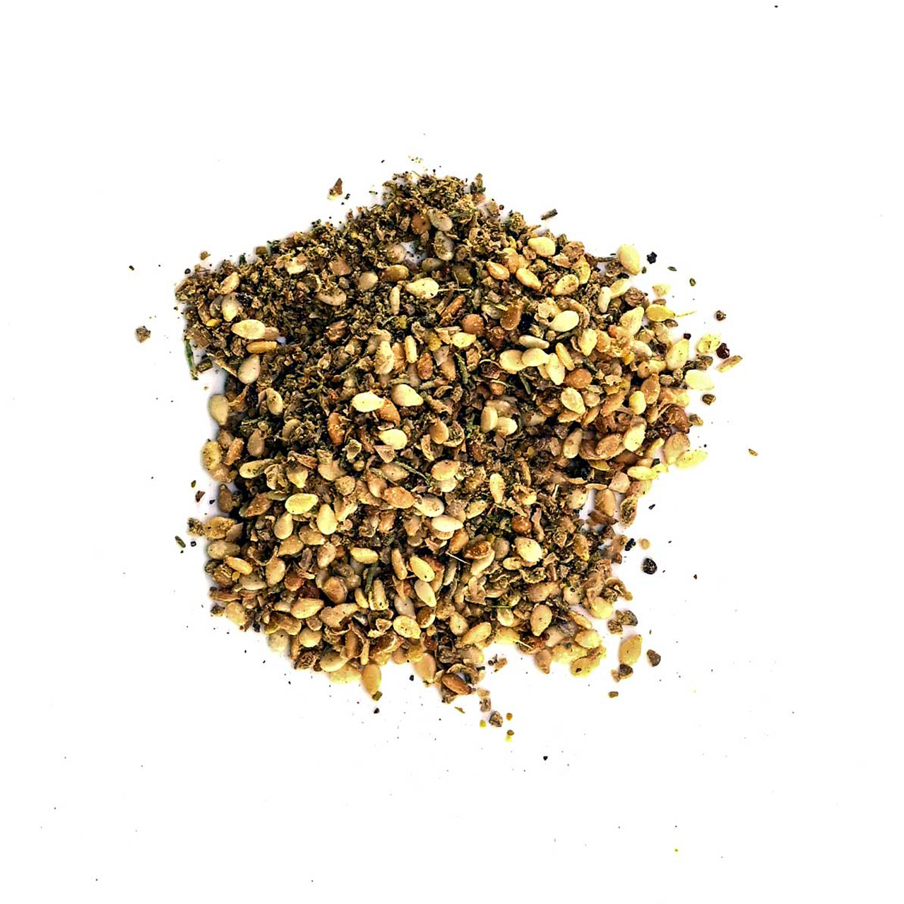 Sesam gibt der Gewürzmischung einen herzhaften, nussigen Geschmack. Kreuzkümmel und Koriander sorgen für eine orientalische Note und Kräuter wie Minze und Thymian für aromatische Frische. Diese herrliche Kombination verfeinert Hummus, Fisch, Fleisch und gedünstetes Gemüse.