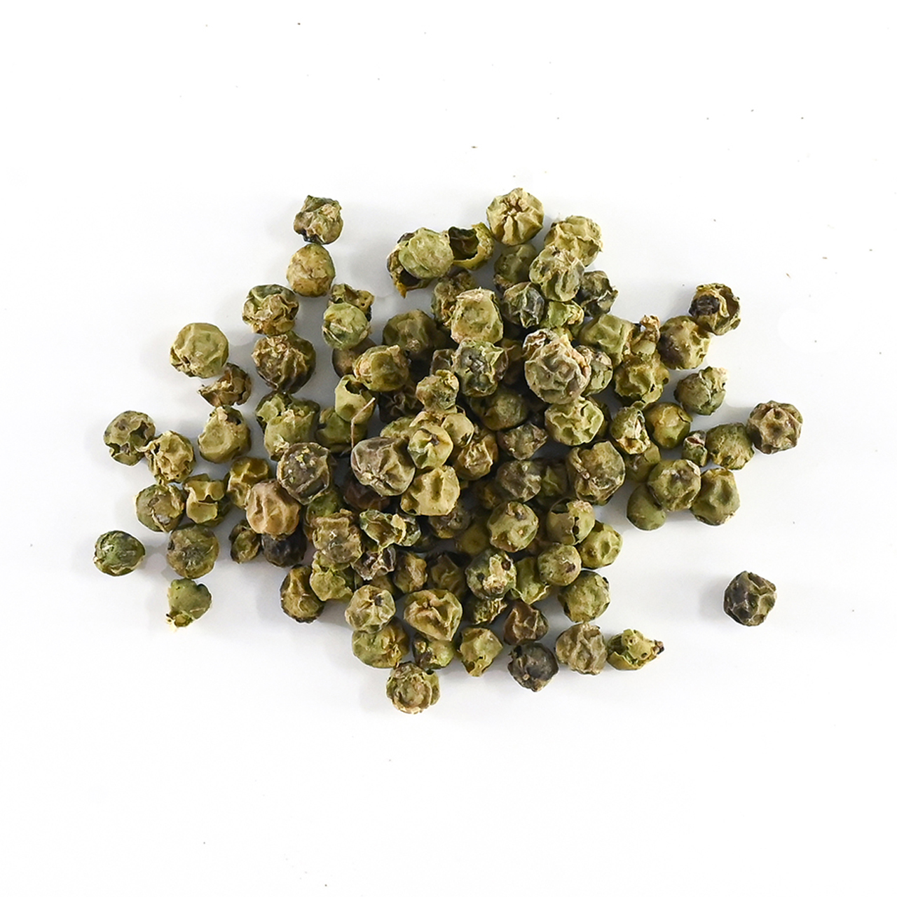 grüner Pfeffer, ganzes Korn, luftgetrocknet aus kontrolliert biologischem Anbau.