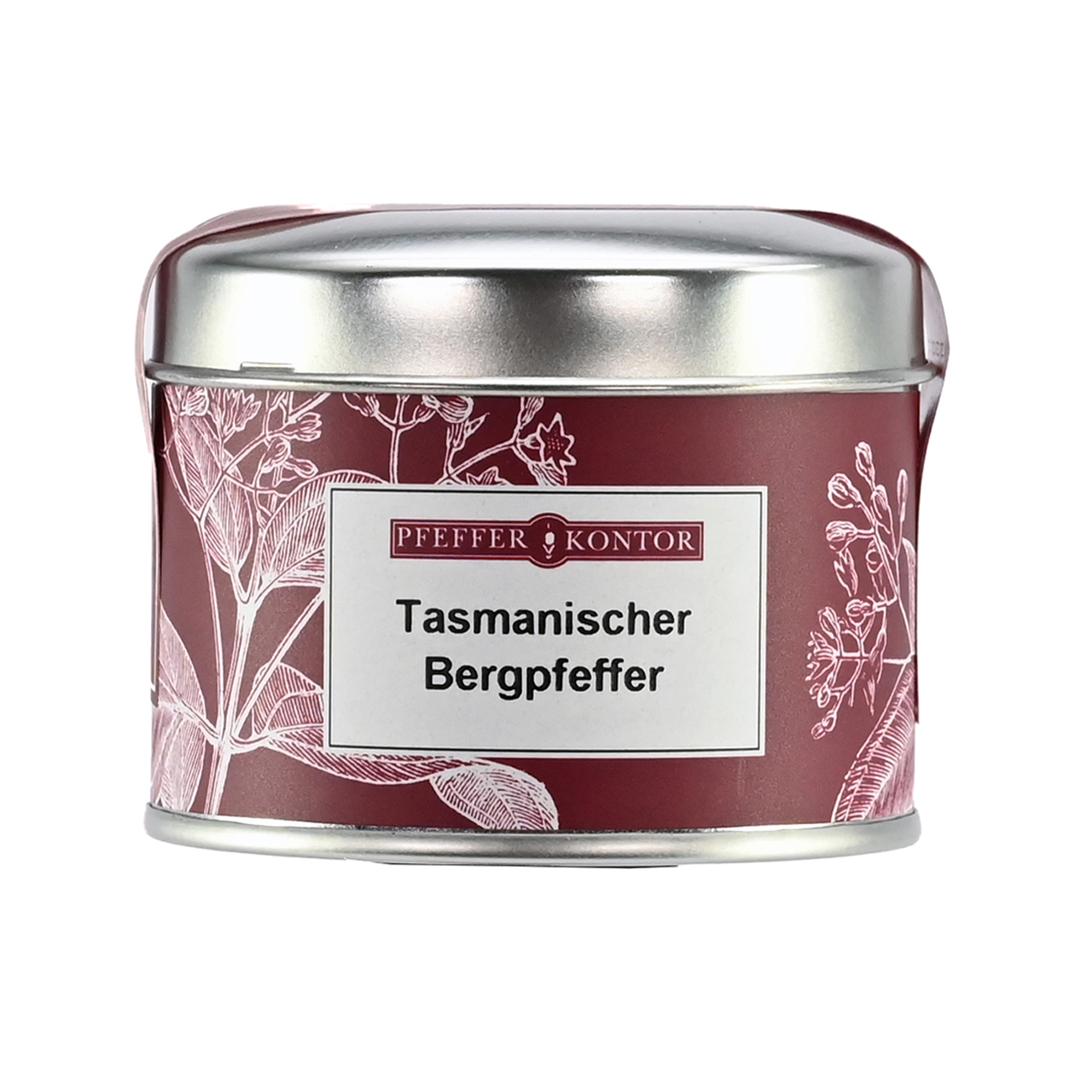 Die Unverwechselbarkeit des Tasmanischen Berg-Pfeffers liegt im aromatischen Zusammenspiel aus herber Süße, explosiver Schärfe und wacholderartigem Nachklang. Im Gegensatz zur gewöhnlichen Lufttrocknung, bei der die Pfefferbeeren ihre Struktur verändern und einschrumpeln, bleibt durch die Gefriertrocknung die ganze Beere in Form und Aroma erhalten.Der tasmanische Berg-Pfeffer überzeugt aber nicht nur durch seinen intensiven Geschmack, sondern trägt durch den hohen Anteil an Antioxidantien auch zum Wohlbefinden und der Gesundheit bei.