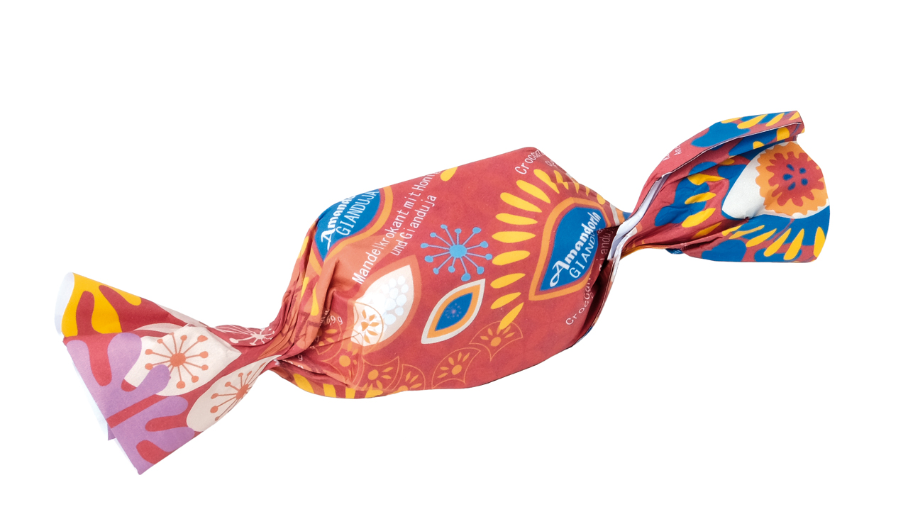 Mandelkrokant in Gianduiaschokolade. In Haselnuss-Gianduiaschokolade getauchtes kalabrisches knuspriges Mandelkrokant, aus besten mit Orangenblütenhonig und Zucker karamellisierten Avola-Mandeln. Einzeln verpackt.