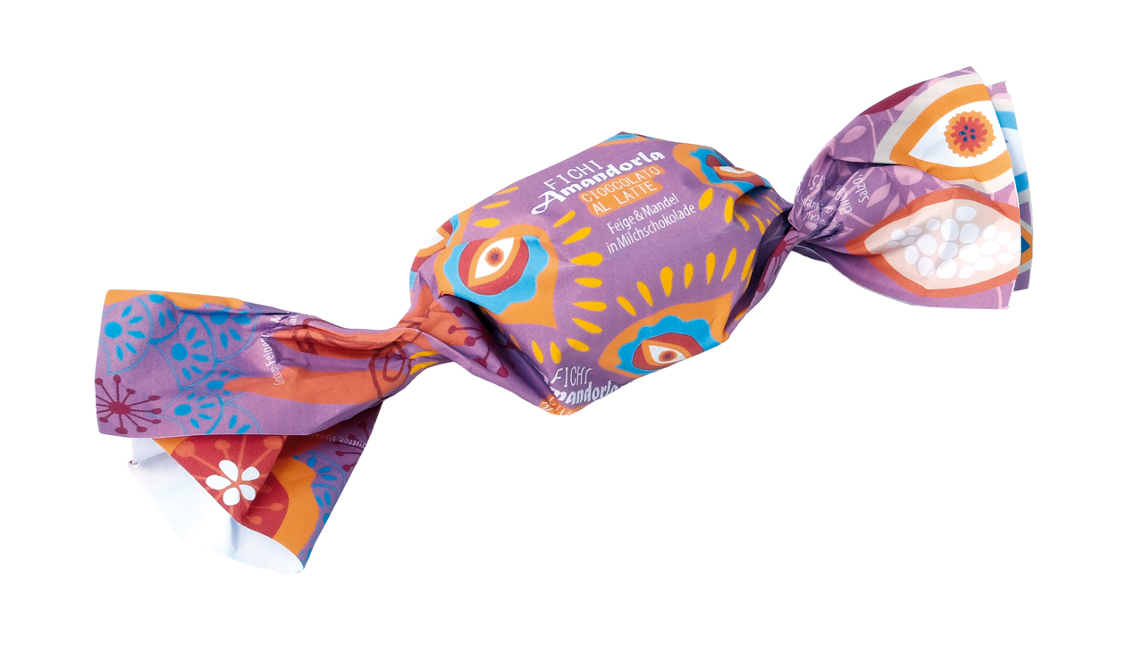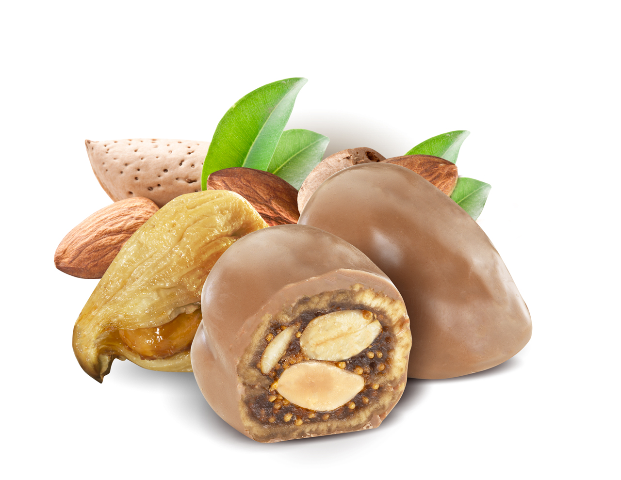 In der Sonne Kalabriens gereifte Feigen mit einem Kern aus in Orangenblütenhonig karamellisierten Mandeln, getaucht in Vollmilchschokolade